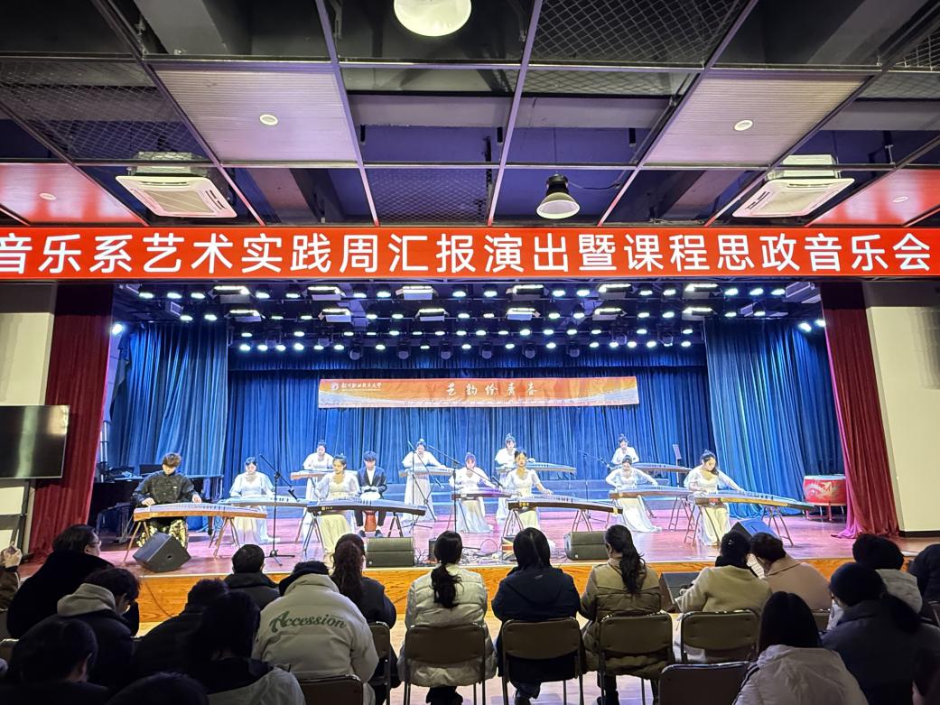 2025年12月3日下午,扬州职业技术大学映月剧场乐声悠扬、掌声雷动,艺术实践周汇报演出暨课程思政音乐会“艺韵绘青春”在此隆重举行。艺术学院封琴、毛益民出席活动,与全体音乐系师生共同见证这场融合艺术之美与思政之魂的视听盛宴。
